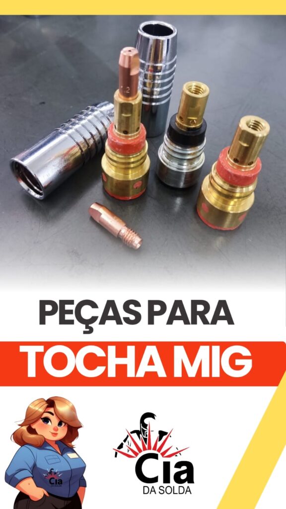 Peças para Tochas MIG/MAG como Bocais, Bicos de Contato, Difusores, Molas, Isoladores, Porta-bocais,
